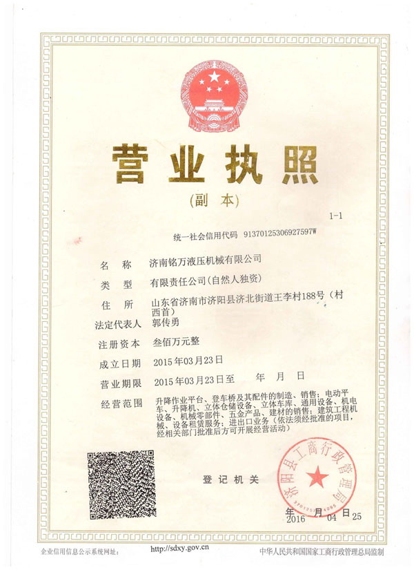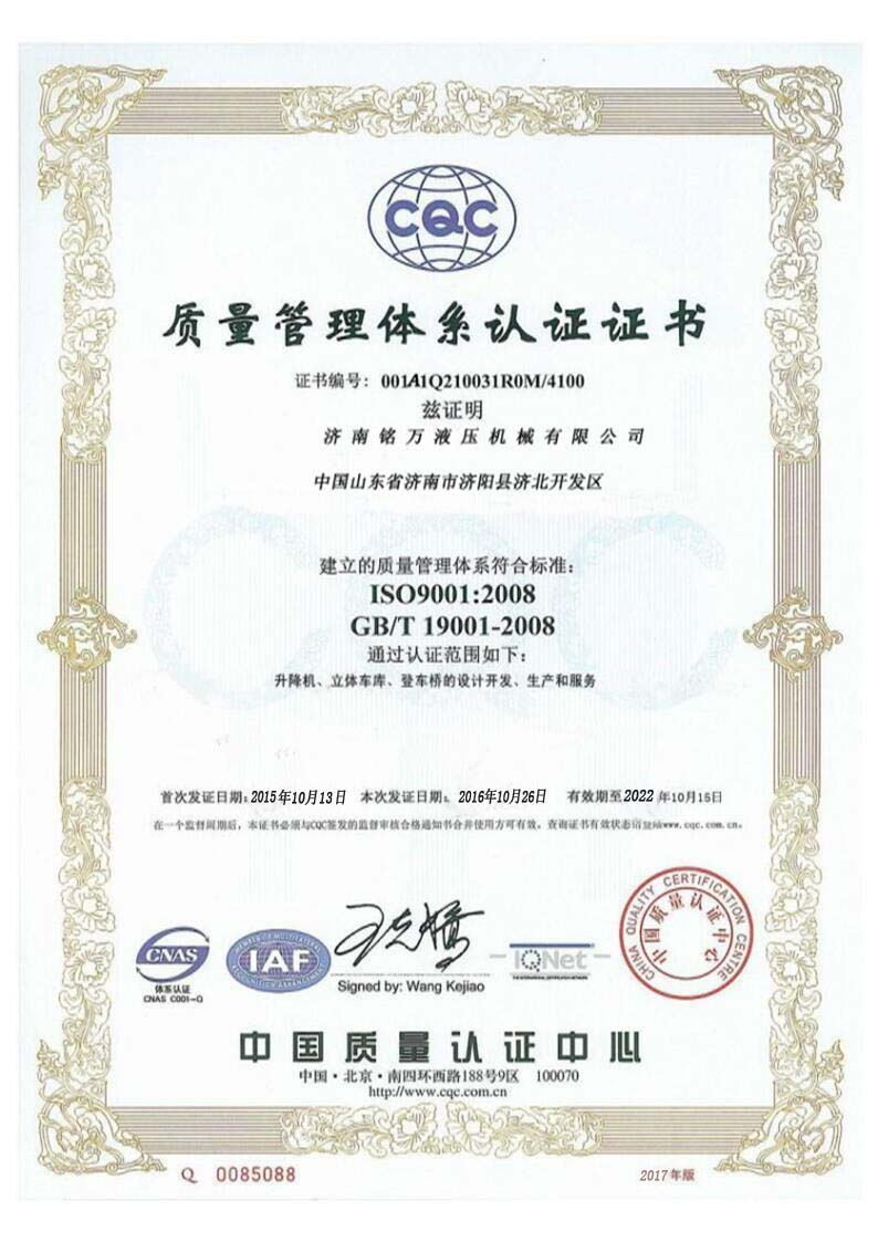 濟(jì)南銘萬液壓機(jī)械有限公司【原濟(jì)南機(jī)械廠】,是全國制造液壓升降機(jī)、升降平臺的廠家,產(chǎn)品有八大系列六十多個品種,規(guī)格齊全、質(zhì)量穩(wěn)定、安全可靠、方便快捷;產(chǎn)品銷往全國各地,深受用戶好評。升降機(jī)廠家技術(shù)力量雄厚,產(chǎn)品設(shè)計先進(jìn)、工藝成熟、實驗檢測手段完善,“質(zhì)量第一,用戶至上”是我們的宗旨。 本公司采用先進(jìn)的管理手段,嚴(yán)密的質(zhì)量監(jiān)控體系和良好的售后服務(wù)隊伍為我們的產(chǎn)品走向市場創(chuàng)造......